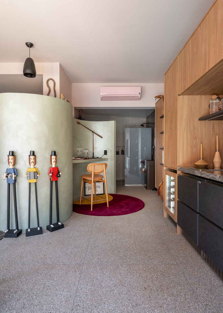 O desafio era unir diferentes estilos, com foco no equilíbrio entre a sensibilidade e a otimização para o dia a dia, combinando elementos clássicos e modernos que fizessem jus à personalidade do espaço.