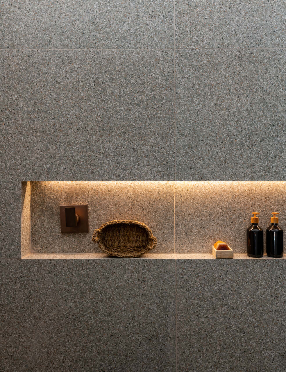 A arquitetura ressalta que é uma tendência entre os consumidores a preferência pela simplicidade com elegância. “As estéticas mais naturais, sem brilho, como o amadeirado, o marmorizado e o cimento queimado vieram para ficar. Hoje, além de todo o requinte, as pessoas buscam funcionalidade e praticidade na hora da limpeza. Brinco que oferecer todo este conjunto é um dos desafios da arquitetura atual”, finaliza Nabila.