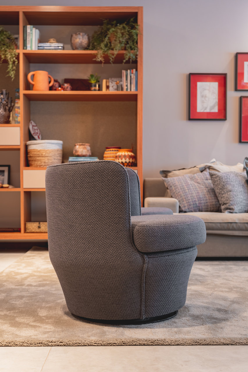 Todo mobiliário solto é da marca Sierra Móveis Belém. O destaque vai para a arca Fênix e as poltronas giratórias Erica. Destaque também para o sofá gigante que reúne todos.