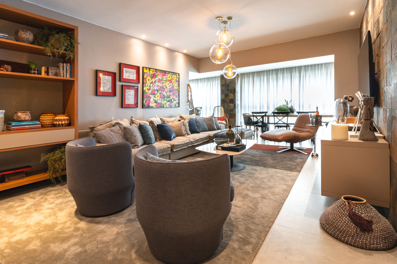 A proposta para o projeto deste apartamento foi abraçar sempre as atividades e necessidades da família que adora receber amigos e parentes. O designer Bertrand Tenório criou um lugar com a identidade dos donos da casa.